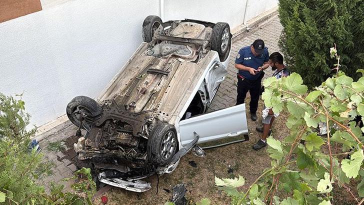 Kaza sonrası savrulan otomobil apartman bahçesine düştü: 3 yaralı