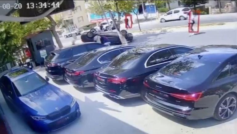 Beylikdüzü’nde ağaca çarpan otomobil takla attı: Yaya ezilmekten son anda kurtuldu