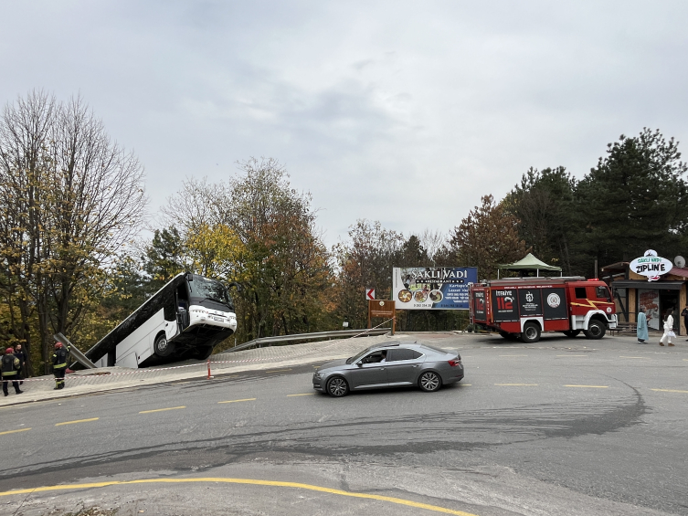 Kocaeli'nin Kartepe ilçesinde yokuşta park edilen tur otobüsü, hareket edince bariyeri aşıp şarampole düştü. Park halindeki tur otobüsü, yokuşta hareket etti. İçinde kimsenin olmadığı otobüs, bariyeri aşıp şarampole düştü. Otobüsün arka tekerlekleri toprak zemine değerken, ön kısmı havada kaldı. Kazada yaralanan olmazken ihbarla bölgeye jandarma ve itfaiye ekipleri yönlendirildi. Jandarma, otobüsün etrafını şeritle çevirerek güvenlik […]